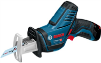 Integrated LED light for illuminating the work area, even in dark places | 060164L976 - GSA 12V-14 Professional | | Stroke rate at no load | 0 – 3.000 min-1 | | Stroke length | 14,5 mm | | Cutting depth in metal pipes/profiles | 50 mm | | Battery voltage | 12 V | | Battery capacity | 3,0 Ah | | Shipping dimensions (LxWxH ) | 220x340x82 mm | | Weight incl. battery | 1,2 kg | Included items: -