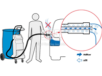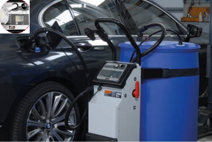 Fully automatic mobile workshop refuelling system for AdBlue®. For the quick and automatic AdBlue® refuelling of passenger and light commercial vehicles.