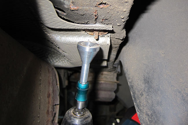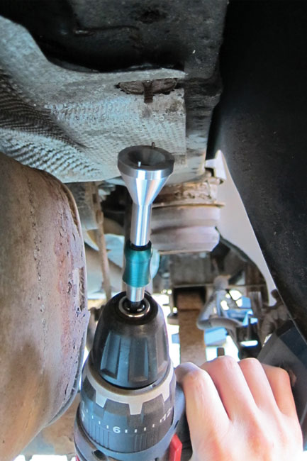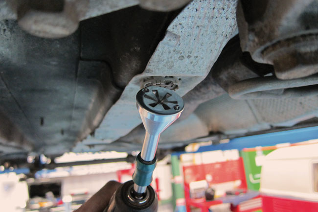 Tool for removing Ford clamping washer 6715468 Clamping Washers are used by many manufacturers to hold in place underbody heat shields and sound deadening materials. They are light weight sprung steel washers that push on to and grip a simple coarsely threaded pin that is permanently attached to the vehicle body. Unfortunately they can be tricky to remove once corroded without breaking them or bending the pin. The 207 1140 006 00 has been developed specifically to assist in the removal and fitting of these Clamping Washers. Designed to fit onto the 32mm diameter washers, the 2 steel pins engage with the washer and allow a cordless drill or any ¼ drive wrench to be used to spin the washer and allow it to “wind” its way off. This method of removal helps avoid breaking the clip, damaging the pin and also helps reduce the chance of the mechanic cutting themselves on the sharp edged clips particularly when they break. Additional Information - For the quick and safe removal/fitting of clamping washers which are used on underbody heat shields etc