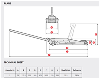 Low profile 2-ton service jack with polyamide casters which are superior to regular cast wheels thanks to their high mechanical strength and thermal properties.