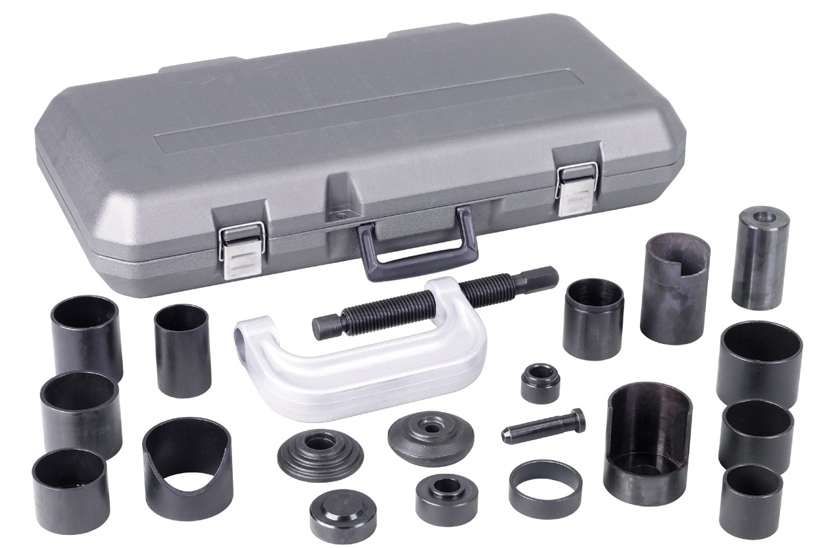 Combines three popular OTC ball joint sets into one SUPER set, competitively priced. This set allows for the removal and installation of press-fit ball joints on: many GM and Ford light-duty trucks GM and Ford vans and SUVs through 2003 Dodge light trucks through 1998 Dodge vans, Durango and Dakota through 2003 Honda Accord, Civic, del Sol, and Prelude through 2001 The OTC designed and produced C-frame tool can be used alone to remove and replace universal joints Comes complete with an application cross reference and instructions in a blow-molded case