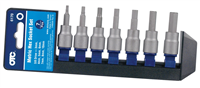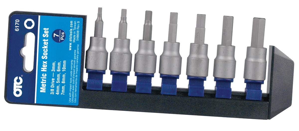 High quality bit sockets that will provide a lifetime of performance when used with hand tools. Includes: Seven 3/8" drive Bits 3mm 4mm 5mm 6mm 7mm 8mm 10mm Note: The warranty is voided if these keys are ever used with impact tools NO EXCEPTIONS! Determination of damage by impact tools is subject to BOSCH evaluation and discretion.