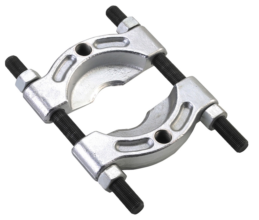 Features 'knife-like" edges which are easily placed behind the part to secure a gripping surface, even when clearances are extremely limited. When used with an OTC Grip-O-Matic® puller, puller jaws grip the attachment's outer edge; when used with a Push-Puller, the puller's legs are threaded into the attachment's two tapped holes. Technical Specifications: Max. Spread: 5,08cm Min. Spread: 0,31cm Use with puller No. 1020, 1022, 1023